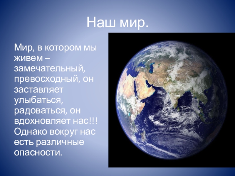 Мир, в котором мы живем – замечательный, превосходный, он заставляет
