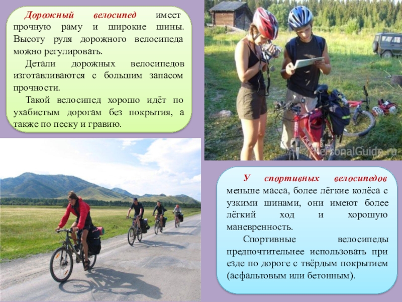 Для осуществления велосипедных путешествий и туристских походов пригодны любые велосипеды, как дорожные, так и спортивные.