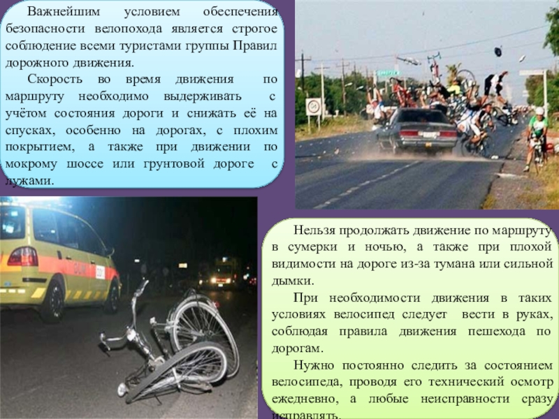 При необходимости движения в таких условиях велосипед следует вести в руках, соблюдая правила движения пешехода по дорогам.