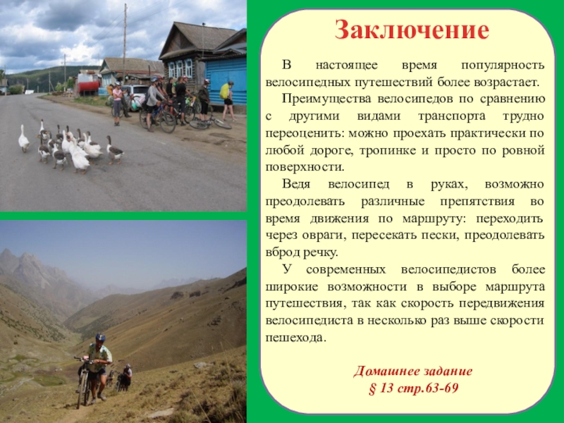 У велосипедистов более широкие возможности в выборе маршрута путешествия: скорость передвижения велосипедиста в несколько раз выше скорости пешехода
