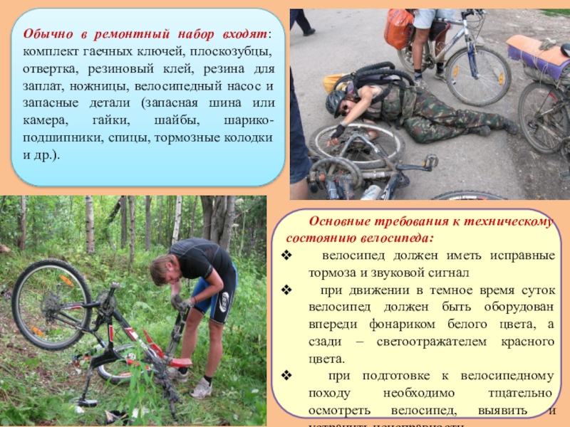 при подготовке к велосипедному походу необходимо тщательно осмотреть велосипед, выявить и устранить неисправности
