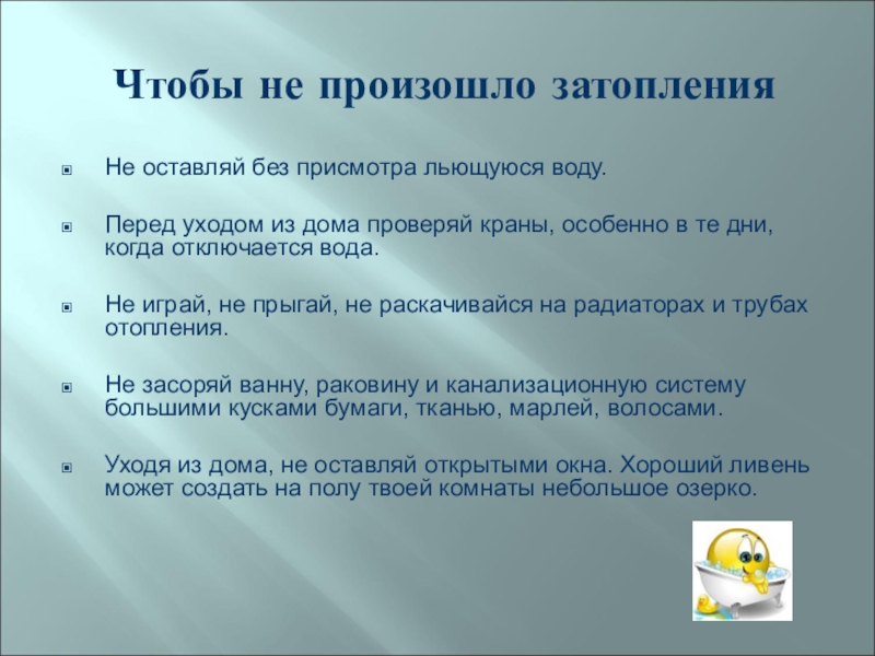 Слайд 14 Чтобы не произошло затопления