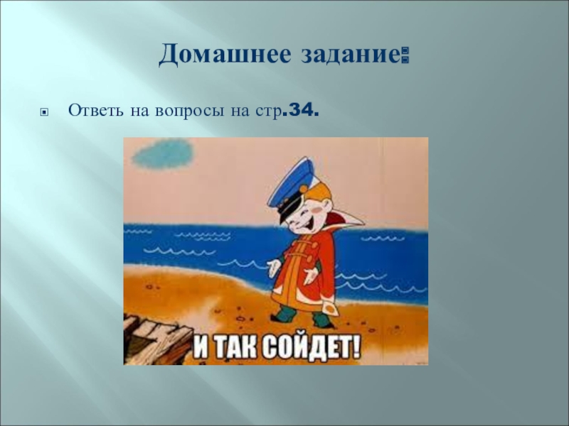 Домашнее задание:Ответь на вопросы на стр.34.