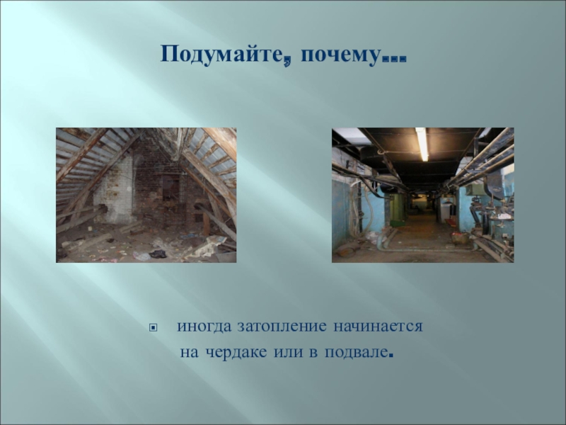 Подумайте, почему…иногда затопление начинается на чердаке или в подвале.