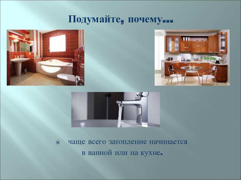 Подумайте, почему…чаще всего затопление начинается в ванной или на кухне.