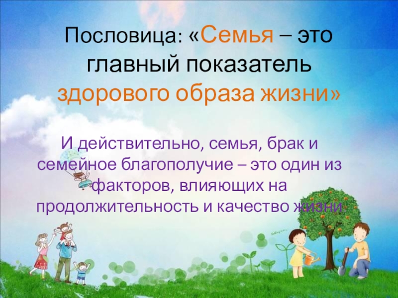 Слайд 10Пословица: «Семья – это главный показатель здорового образа жизни»