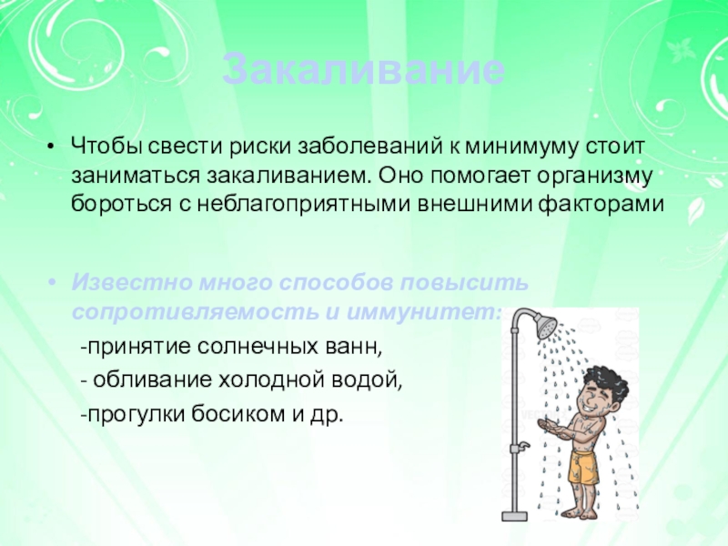 Чтобы свести риски заболеваний к минимуму стоит заниматься закаливанием. Оно помогает