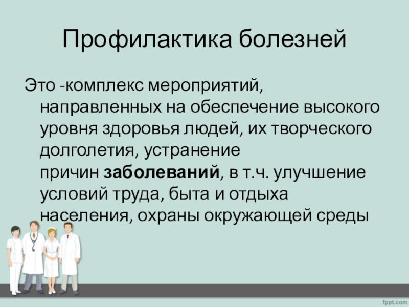 их творческого долголетия, устранение причин заболеваний, в т.ч. улучшение условий труда, быта и отдыха населения, охраны окружающей среды