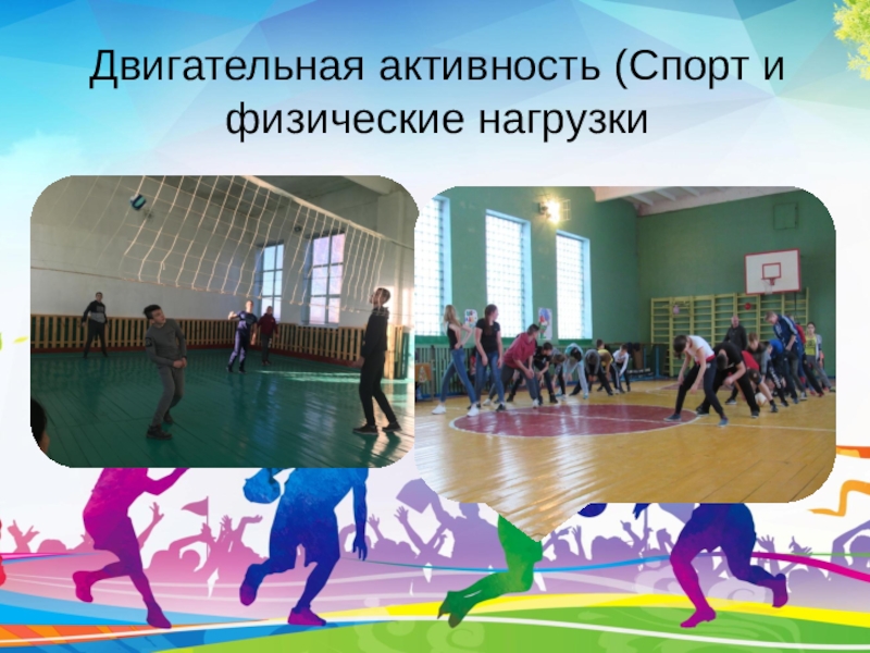 Слайд 5Двигательная активность (Спорт и физические нагрузки