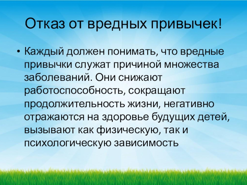 Слайд 15Пагубные привычки не просто оставляют неизгладимый след на здоровье самого человека,