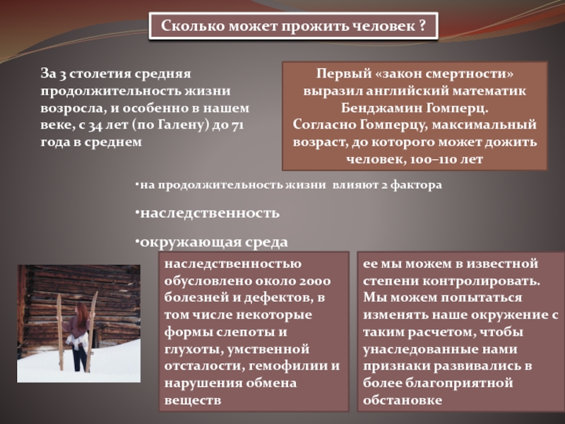 Согласно Гомперцу, максимальный возраст, до которого может дожить человек, 100–110 лет