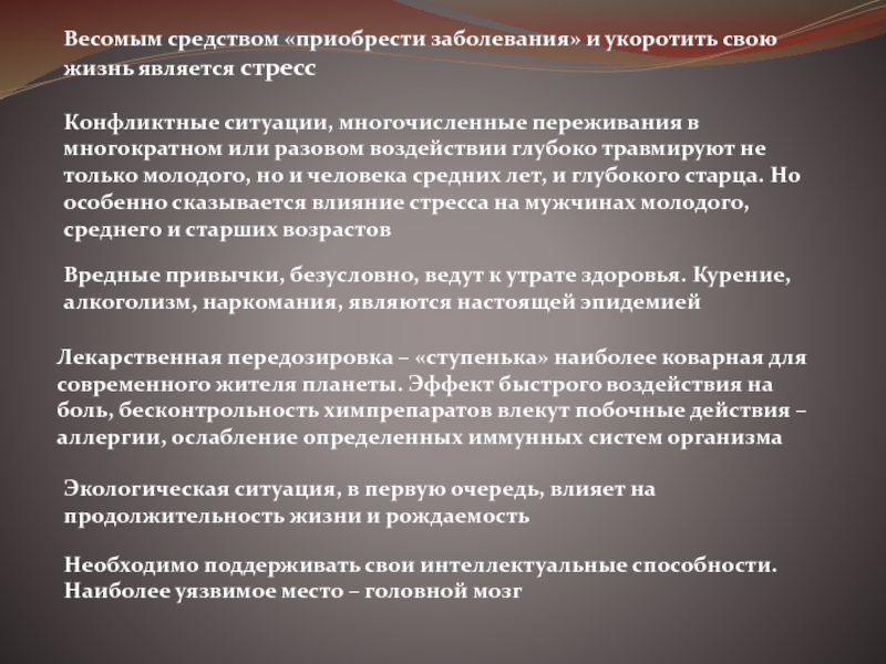 • поддержание в течение жизни выработанного и апробированного стиля жизни