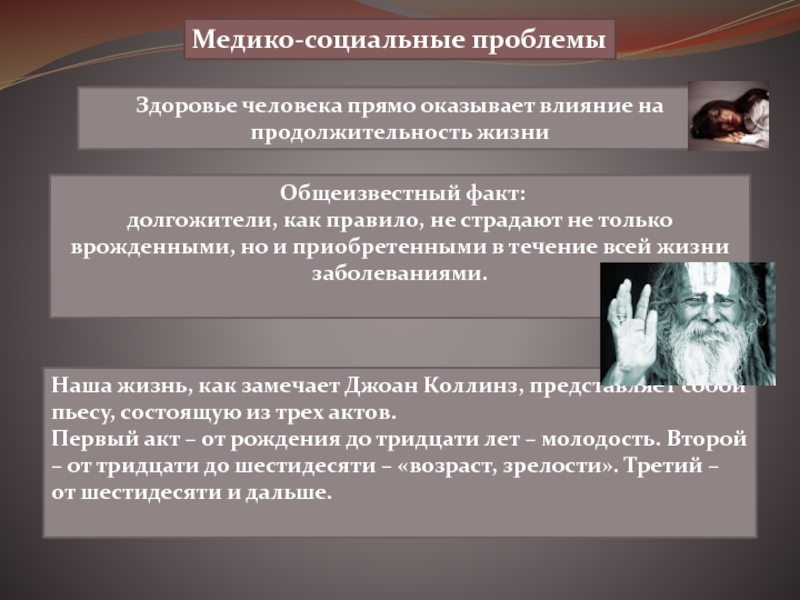 Первый акт – от рождения до тридцати лет – молодость. Второй – от тридцати до шестидесяти – «возраст, зрелости». Третий – от шестидесяти и дальше.