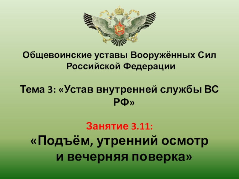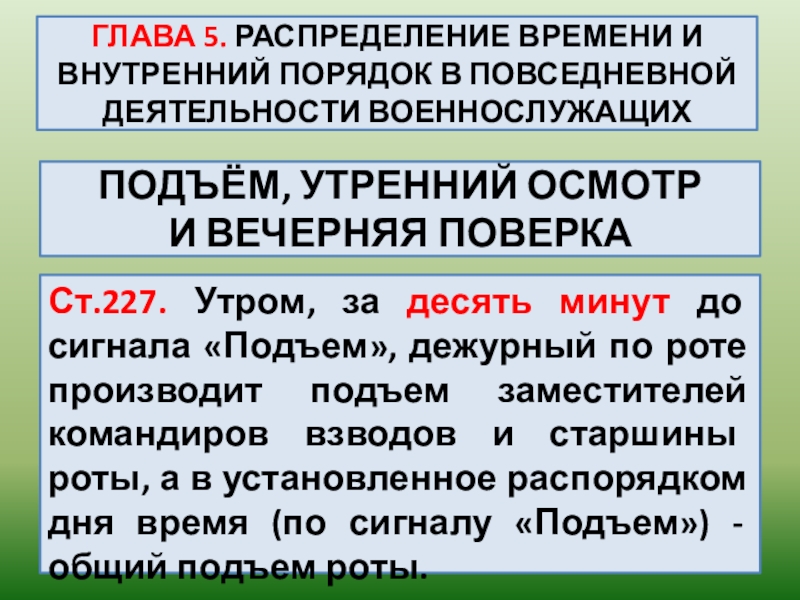 ПОДЪЁМ, УТРЕННИЙ ОСМОТР И ВЕЧЕРНЯЯ ПОВЕРКА