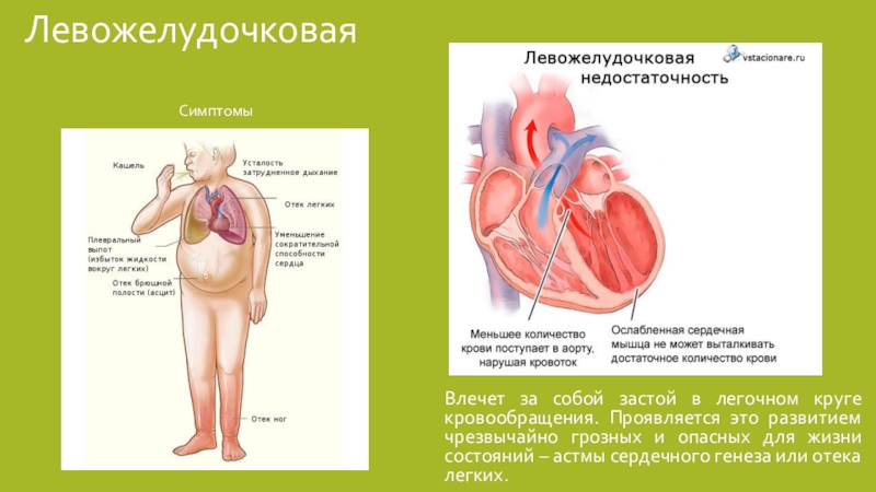 Влечет за собой застой в легочном круге кровообращения. Проявляется это развитием
