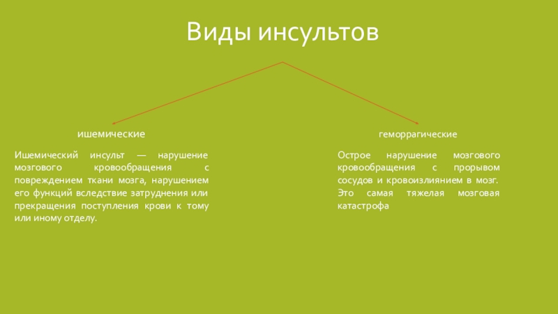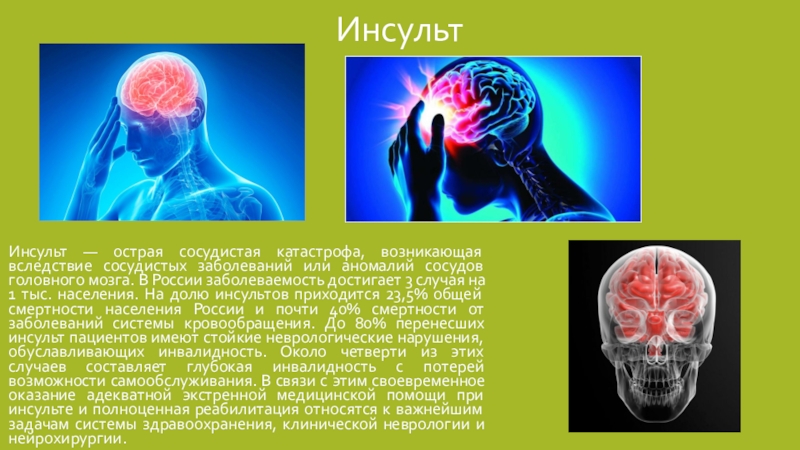 Инсульт — острая сосудистая катастрофа, возникающая вследствие сосудистых заболеваний или аномалий