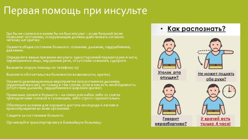 был инсульт – и сам больной (если позволяет состояние), и окружающие должны действовать согласно четкому алгоритму: