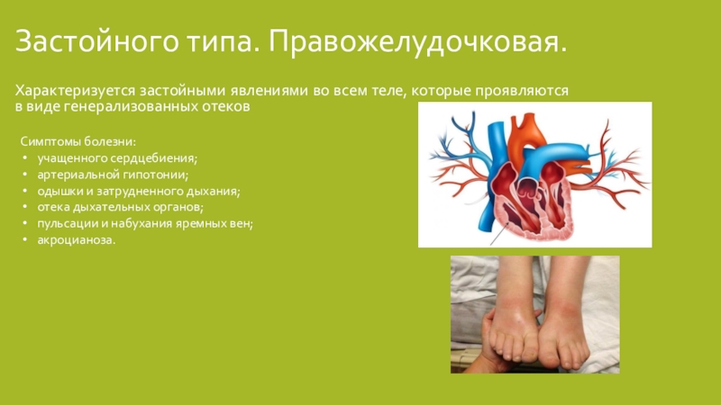 Характеризуется застойными явлениями во всем теле, которые проявляются в
