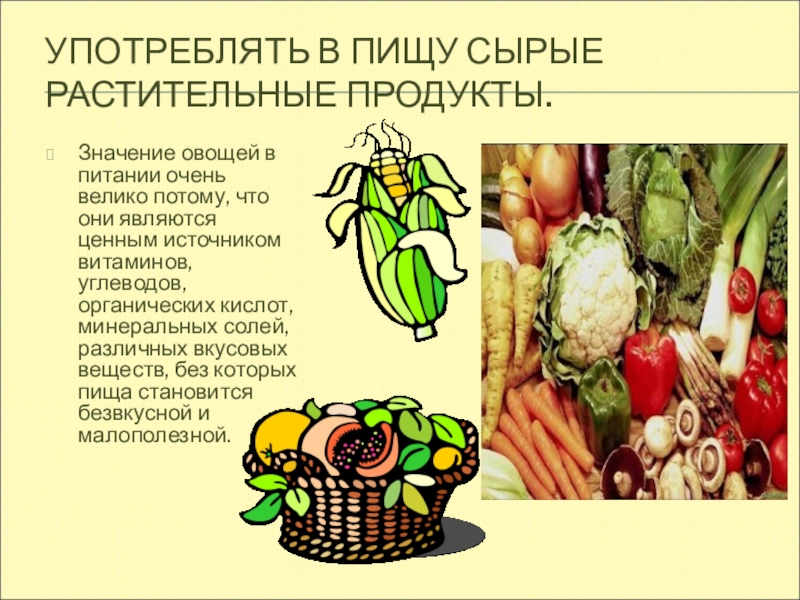 Слайд 6УПОТРЕБЛЯТЬ В ПИЩУ СЫРЫЕ РАСТИТЕЛЬНЫЕ ПРОДУКТЫ.