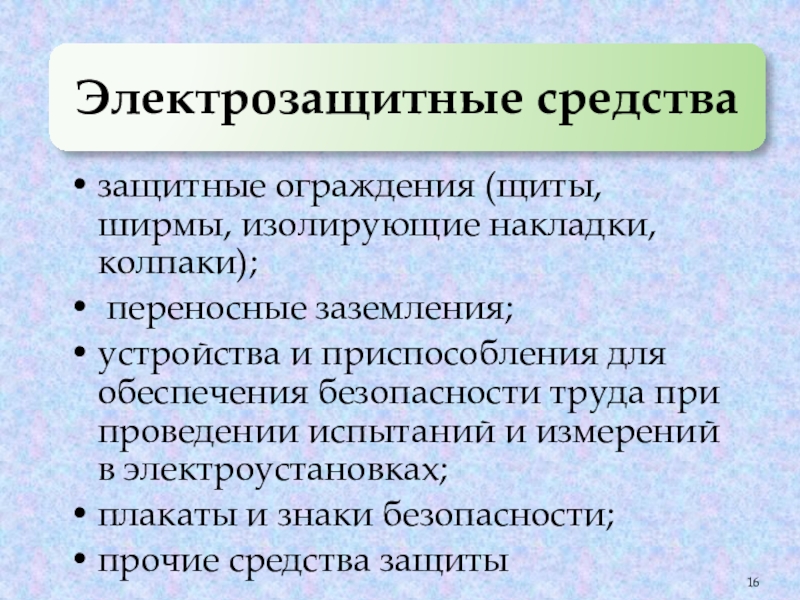 вредного и опасного воздействия электрического тока, электрической дуги, электромагнитного поля и статического электричества.
