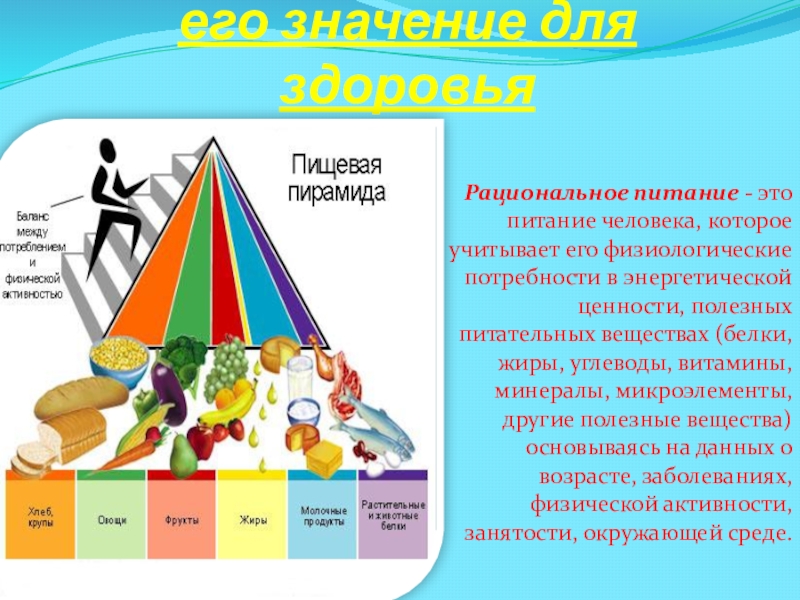 Слайд 6Рациональное питание и его значение для здоровья