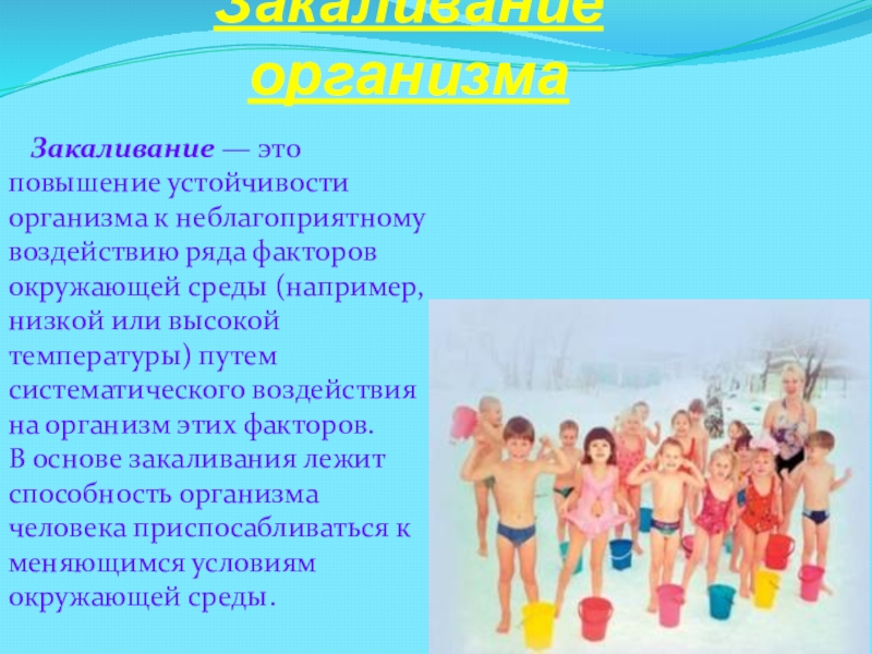 Слайд 9Закаливание организма
