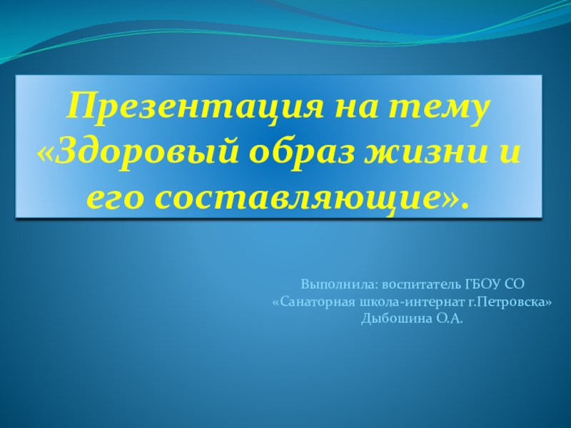 Слайд 1Презентация на тему «Здоровый образ жизни и его составляющие».