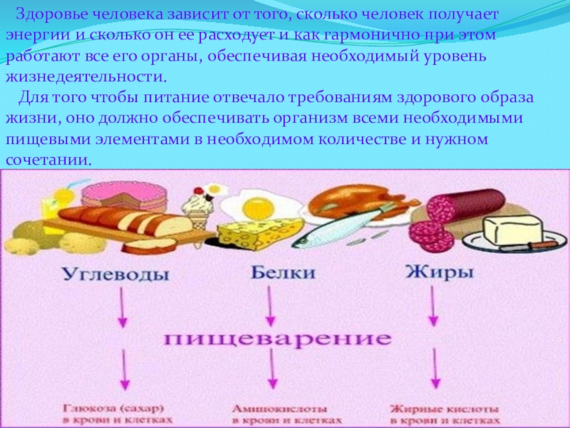 Слайд 7 Здоровье человека зависит от того, сколько человек получает энергии