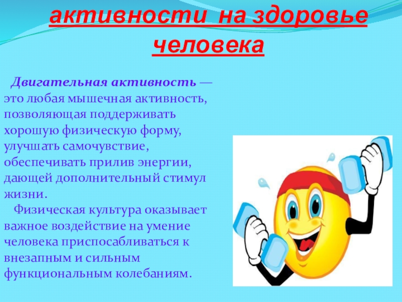Слайд 8Влияние двигательной активности на здоровье человека