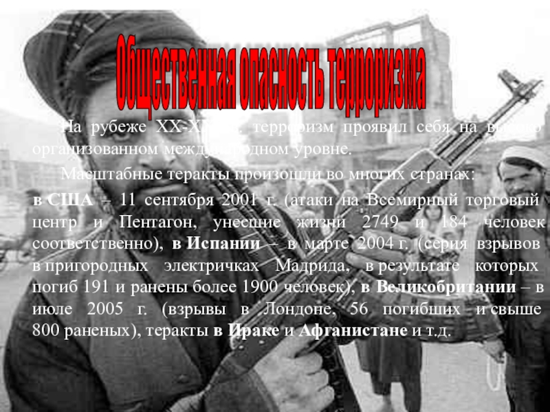 На рубеже ХХ-ХХI в. терроризм проявил себя на высоко организованном международном