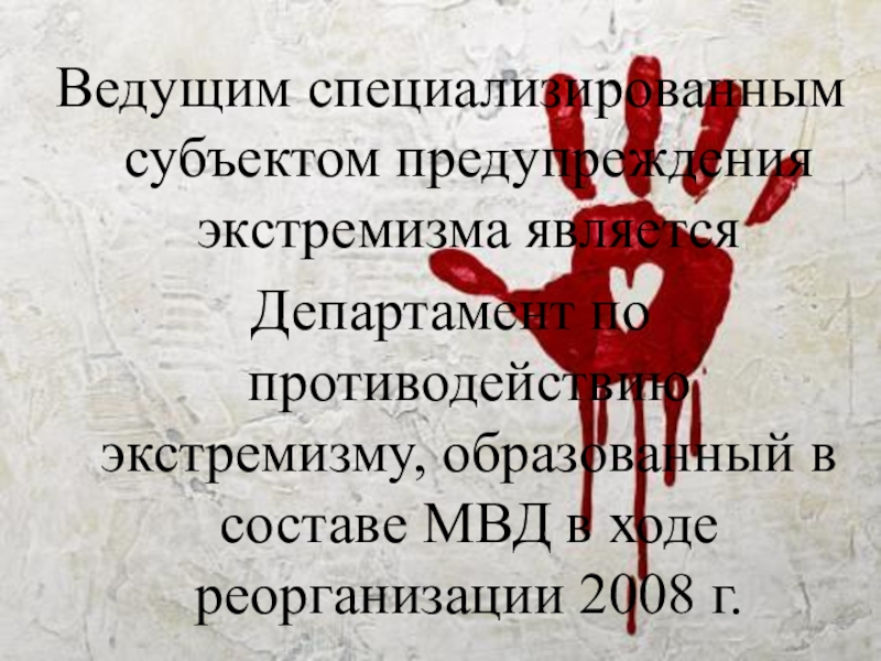 Ведущим специализированным субъектом предупреждения экстремизма является