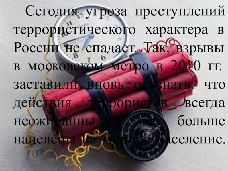 в московском метро в 2010 гг. заставили вновь осознать, что действия террористов всегда неожиданны и все больше нацелены на мирное население.