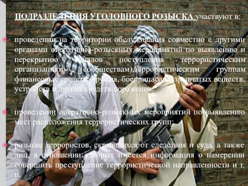 ПОДРАЗДЕЛЕНИЯ УГОЛОВНОГО РОЗЫСКА участвуют в: