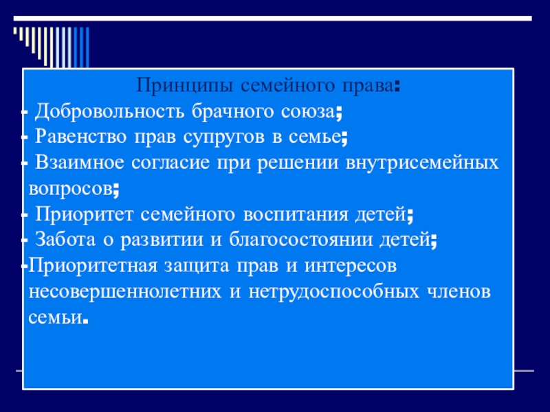 Слайд 11Принципы семейного права: