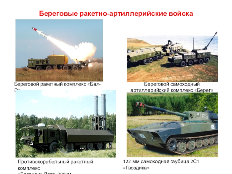 Стрелковое, артиллерийское, танки, боевые машины пехоты, бронетранспортёры, экранопланы и корабли на воздушной подушке