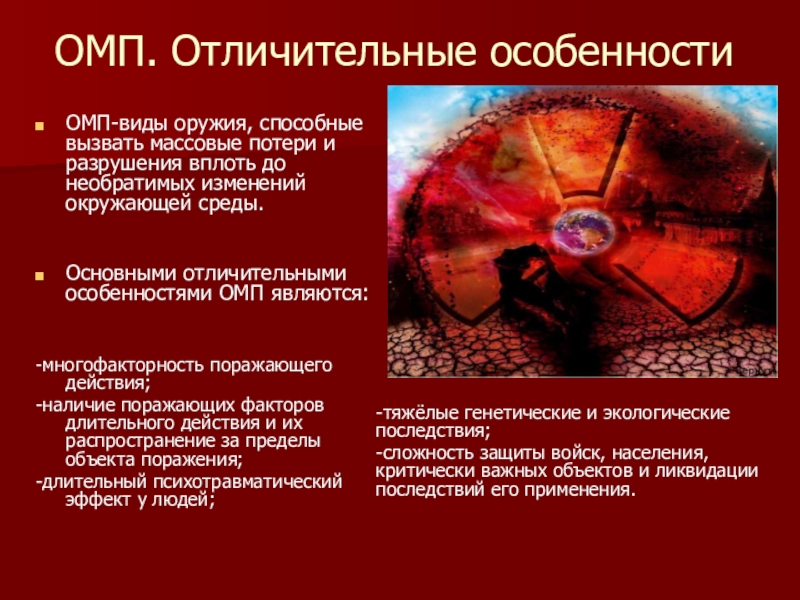 -сложность защиты войск, населения, критически важных объектов и ликвидации последствий его применения.