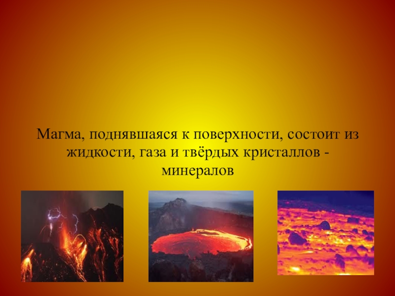 Слайд 6Магма, поднявшаяся к поверхности, состоит из жидкости, газа и твёрдых кристаллов