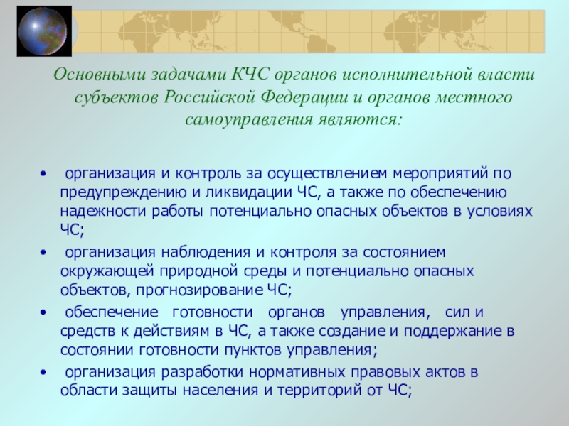 Слайд 14Основными задачами КЧС органов исполнительной власти субъектов Российской Федерации и органов