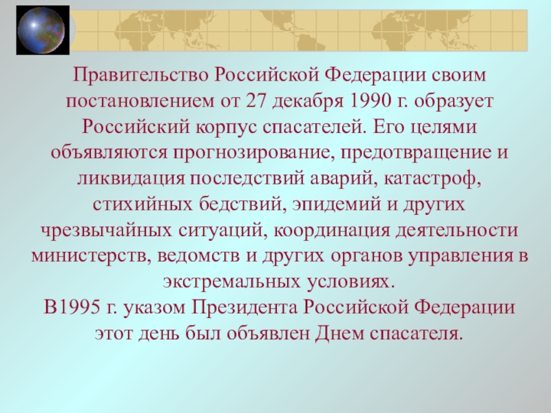Слайд 3Правительство Российской Федерации своим постановлением от 27 декабря 1990 г. образует