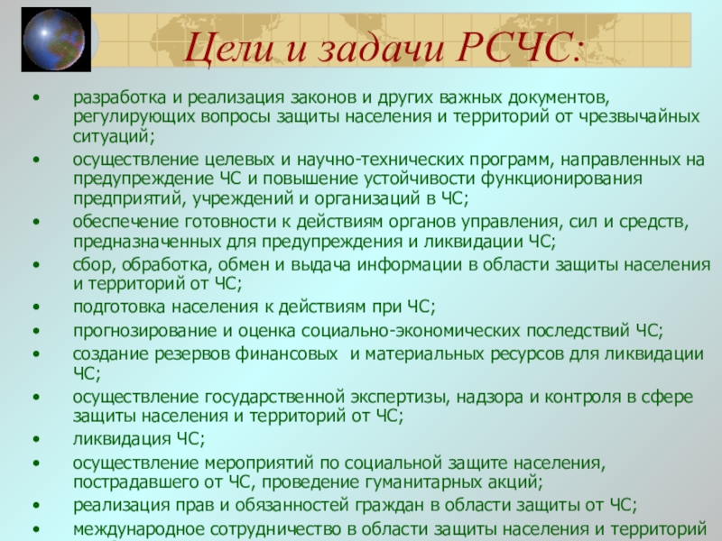 - определение основных направлений совершенствования дальнейшего развития РСЧС;