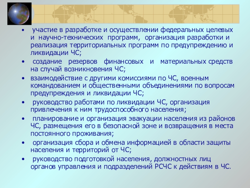 осуществление целевых и научно-технических программ, направленных на предупреждение ЧС и повышение устойчивости функционирования предприятий, учреждений и организаций в ЧС;
