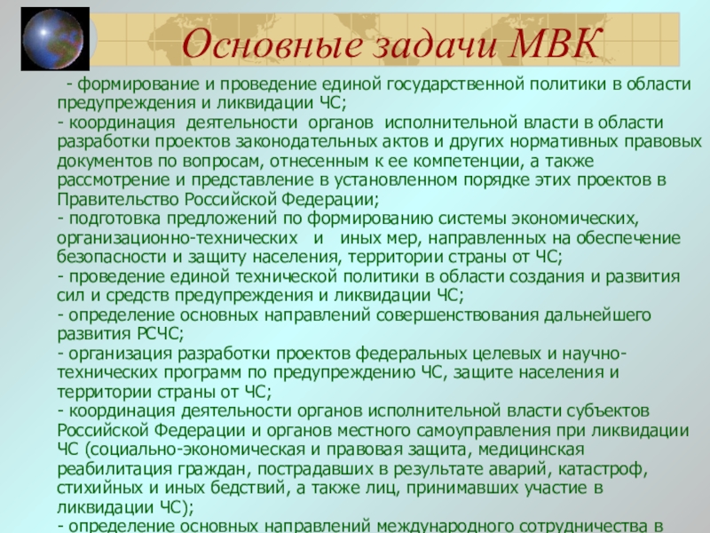 - определение основных направлений международного сотрудничества в области предупреждения и ликвидации ЧС.