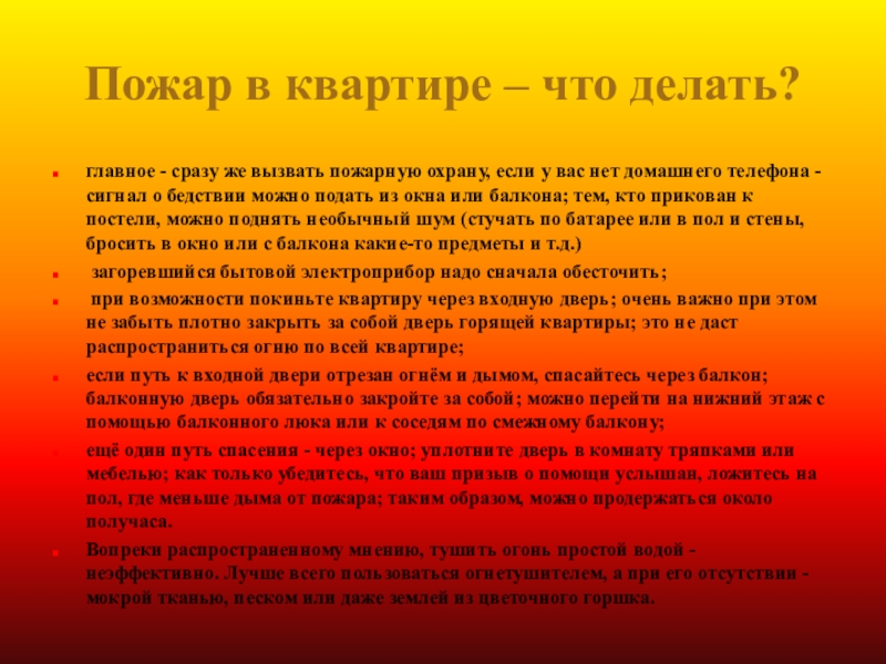 Слайд 8Пожар в квартире – что делать?