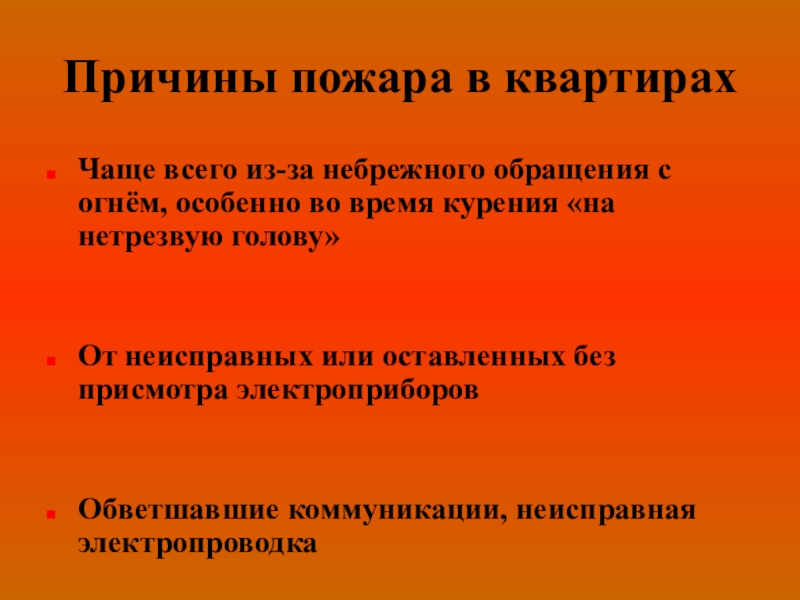 Слайд 6Причины пожара в квартирах