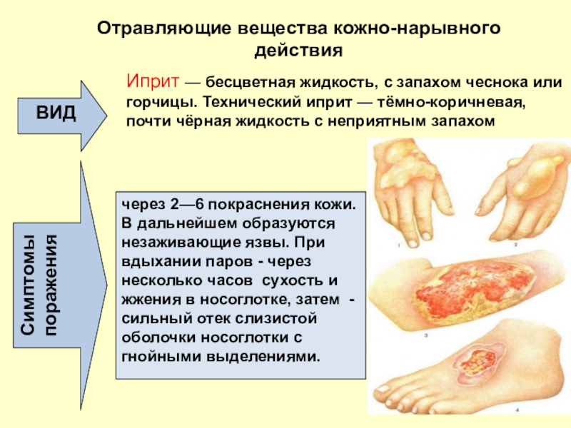 6. Назовите отравляющие вещества относящиеся к группе кожно-нарывного действия