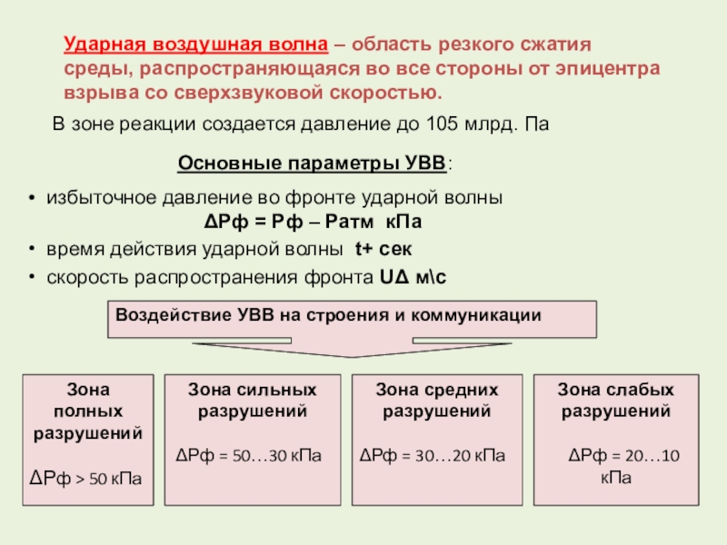 4. Укажите, какое избыточное давление соответствует зоне сильных разрушений при воздействии ударной воздушной волны?