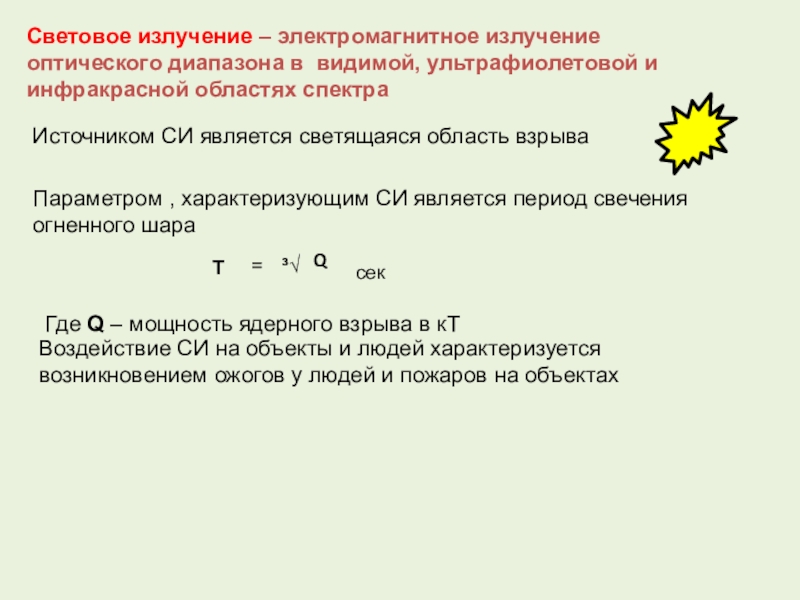 Воздействие СИ на объекты и людей характеризуется возникновением ожогов у людей и пожаров на объектах