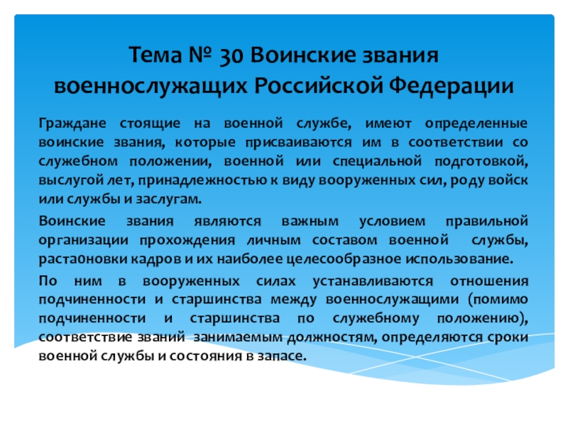 Слайд 1Тема № 30 Воинские звания военнослужащих Российской Федерации