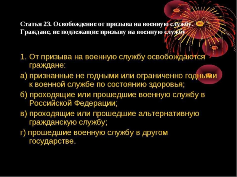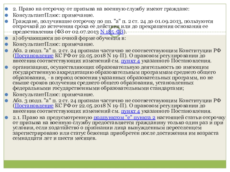 Слайд 222. Право на отсрочку от призыва на военную службу имеют граждане: