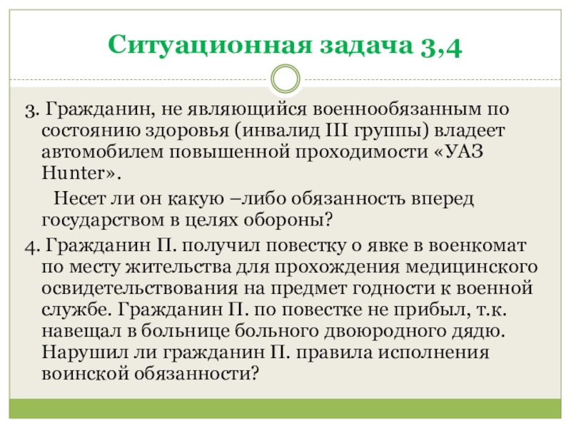 3. Ответ: да, он несет военно ‑ транспортную обязанность.